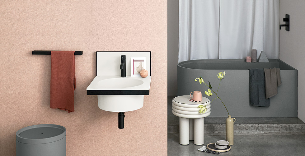 ミニマルなスタイルの壁掛け洗面器「エル」