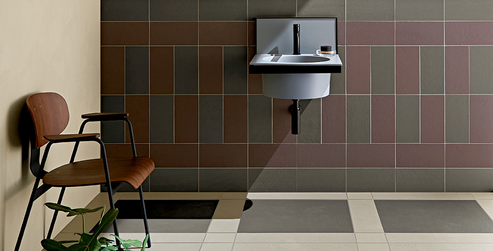エルは、スチールフレームとセラミックシンクの組み合わせがユニークな壁掛けの洗面器です。