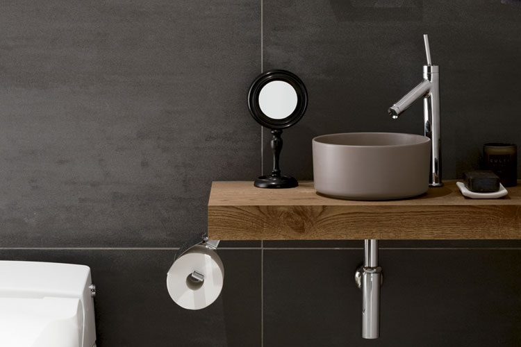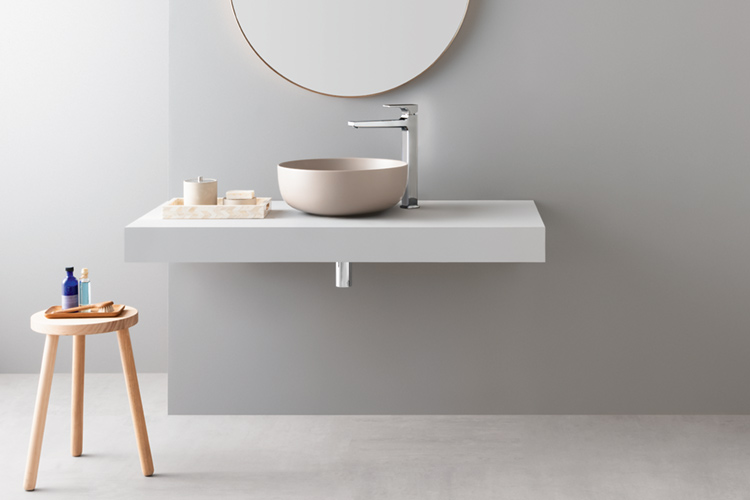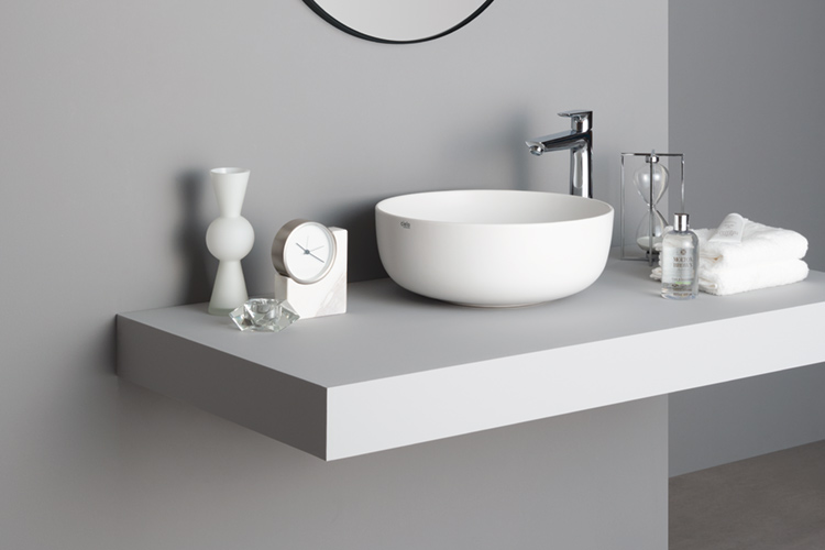 エラは、トレンドを反映させた深型の置き型ボウルです。ヨーロッパのトレンドである高さのあるフォルムは、存在感抜群。上質な「うつわ」をも思わせるわずか5ミリのスリムなエッジは美しく、実用性を犠牲にしていません。あたたかみのある上品なシルエットが水まわり空間に映えるプロダクトです。