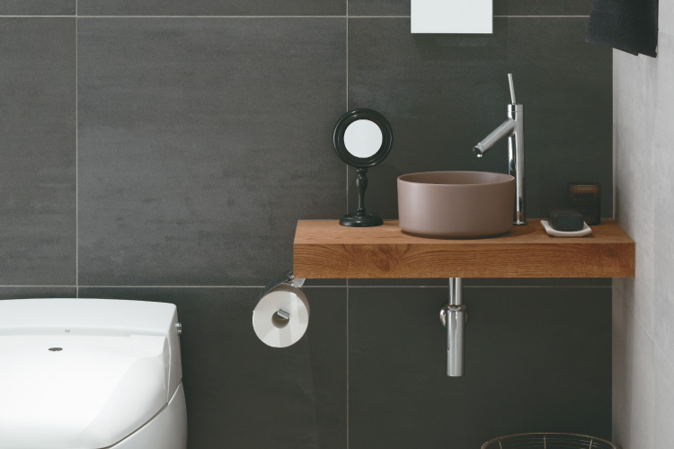 トイレスペースが狭くても、ファッショナブルな手洗ボウルをセットできます。