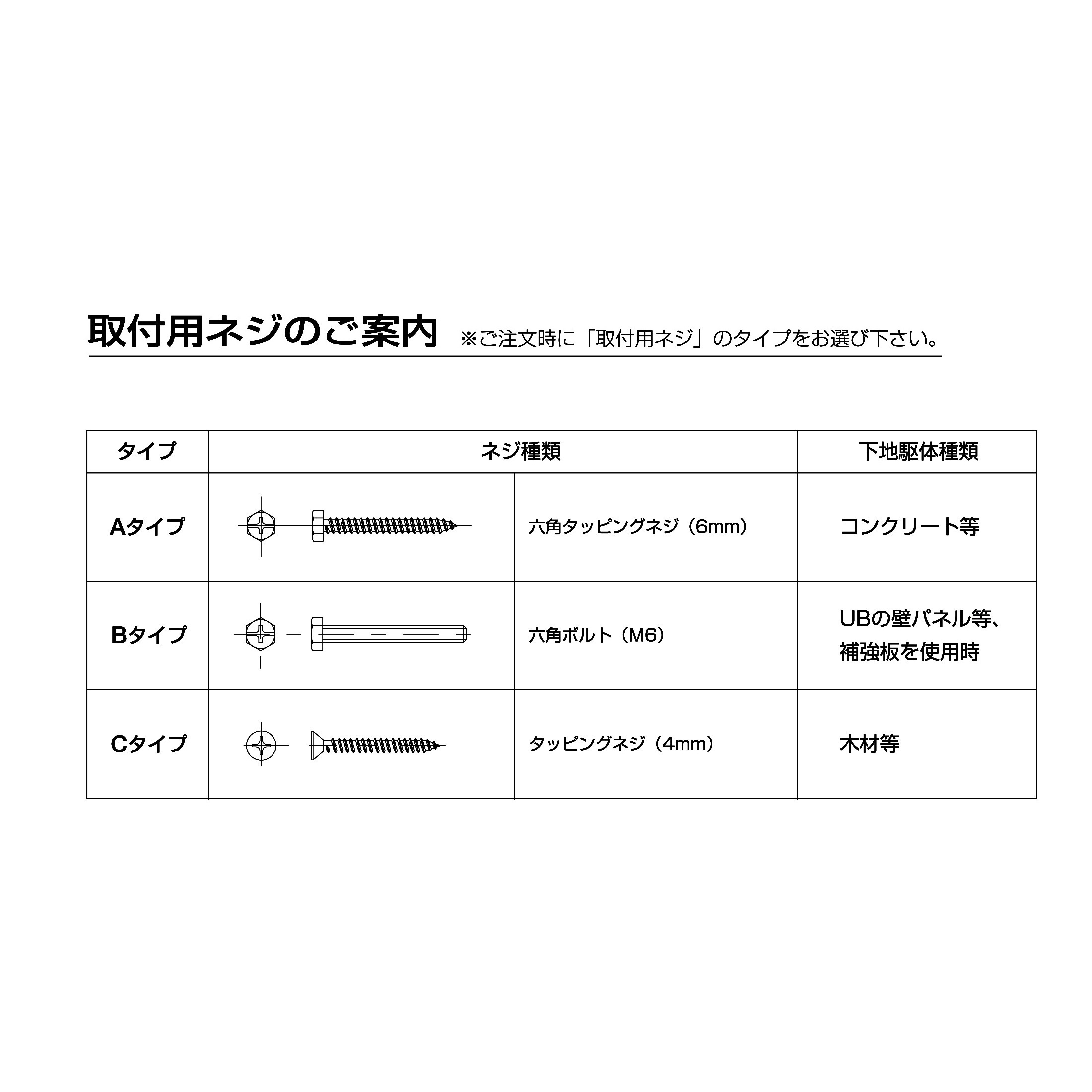 | 設置方法 | ※ネジタイプA:六角タッピングネジ(6mm)となります。 |