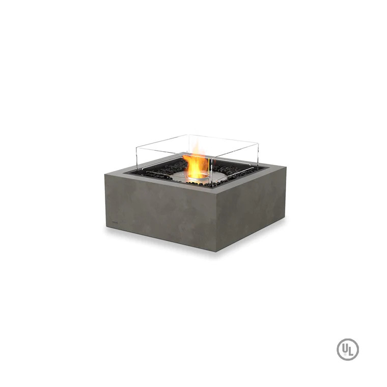 エコスマートファイヤー「BASE30」はスクエア型のコンクリートで出来ている本体部分とステンレス製のAB3バーナーの組み合わせにより構成されています。本体のコンクリート部分は熱、雨、風に強く室内空間、屋外空間両方でご使用いただけます。コンクリートはコンクリートカラーをモチーフにした「NATURAL」と黒の「GRAPHITE」白の「BONE」の3色展開となっており、お好きなカラーを空間に合わせてお選びください。ラウンド型のAB3バーナーに敷き詰める黒のグラスチャコールとガラススクリーンが標準装備されています。別売りのPROTECTIVE COVERをご使用いただければ使用しない際にも製品をクリーンに保つことが可能です。バイオエタノール暖炉は綺麗なオレンジ色の炎を演出します。暖房能力も高く、燃焼時に発生する水蒸気により加湿効果も得られます。