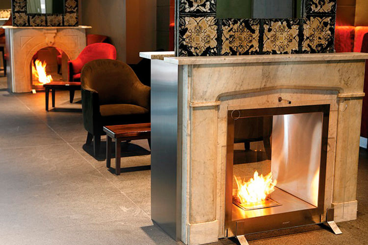 自立式の家具型暖炉で、ステンレススティール製のファイアーボックスの内部に、EcoSmartバーナーを収容できるようになっています。