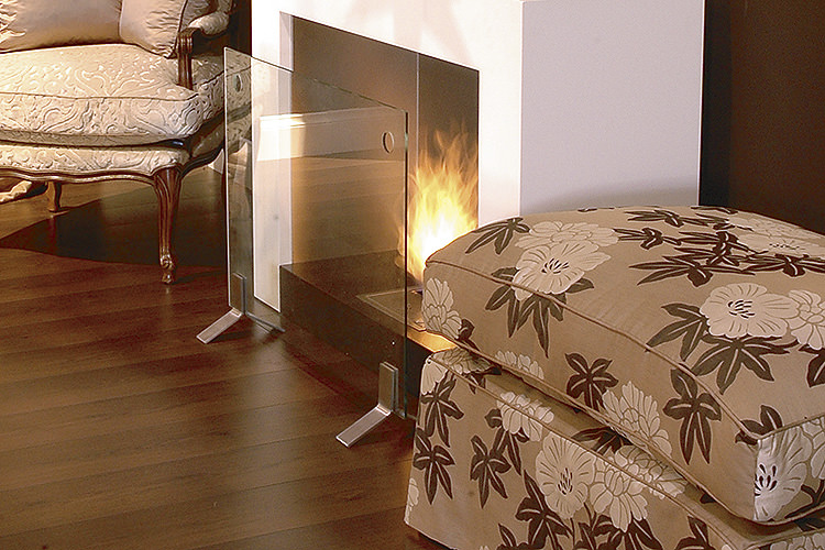 FIRE SCREEN PLASMAは、置き型のエコスマートファイヤー用の風よけスクリーンです。