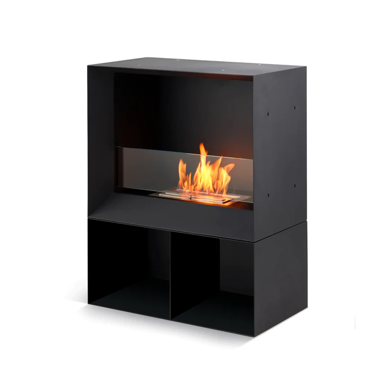 横長の小型バーナー(XS340)を搭載した暖炉本体部分を最小単位として、下段・左右に高さ違いのモジュールを組み合わせることで、5種類8パターンの暖炉ユニットが完成します。