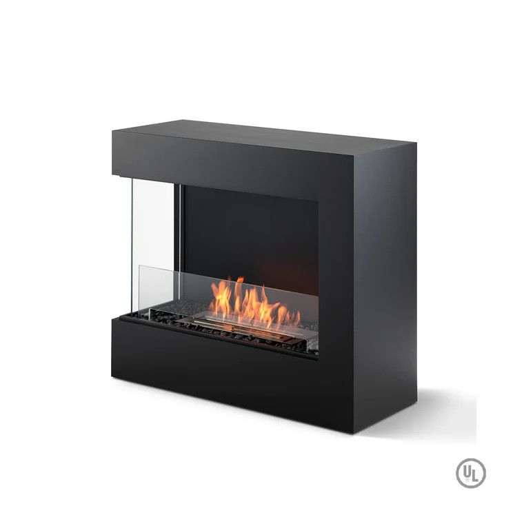 EcoSmart Fireの中で最も人気のあるXLバーナーが内蔵された唯一のDESIGNER FIREPLACESです。内側は炎をより美しく魅せるblack。外側もシックにblackで統一しています。Kan Seriesは前面と左右のどちらか2か所の開口部またはガラス部より炎を眺めることができます。バイオエタノール暖炉は綺麗なオレンジ色の炎を演出します。暖房能力も高く、燃焼時に発生する水蒸気により加湿効果も得られます。装飾BOX付きのモデルにはお好みのアクセサリーを入れて空間を彩ることができます。