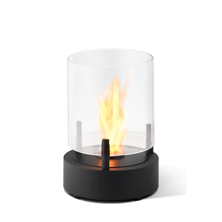 筒状のガラスが360度どの角度から見てもきれいな炎を鑑賞する事が可能です。AB3バーナーを搭載し室内での使用の場合は15帖程の暖房能力があります。室内、屋外両方で使用が可能で、小型に設計されている為、住空間においての持ち運びも出来るポータブル性も人気の一つです。別売りのPROTECTIVE COVERをご使用いただければ使用しない際にも製品をクリーンに保つことが可能です。バイオエタノール暖炉は綺麗なオレンジ色の炎を演出します。暖房能力も高く、燃焼時に発生する水蒸気により加湿効果も得られます。