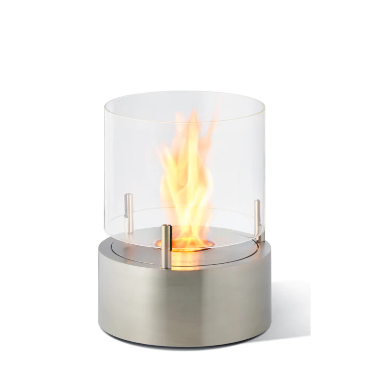筒状のガラスが360度どの角度から見てもきれいな炎を鑑賞する事が可能です。室内、屋外両方で使用が可能で、小型に設計されている為、住空間においての持ち運びも出来るポータブル性も人気の一つです。別売りのPROTECTIVE COVERをご使用いただければ使用しない際にも製品をクリーンに保つことが可能です。バイオエタノール暖炉は綺麗なオレンジ色の炎を演出します。暖房能力も高く、燃焼時に発生する水蒸気により加湿効果も得られます。