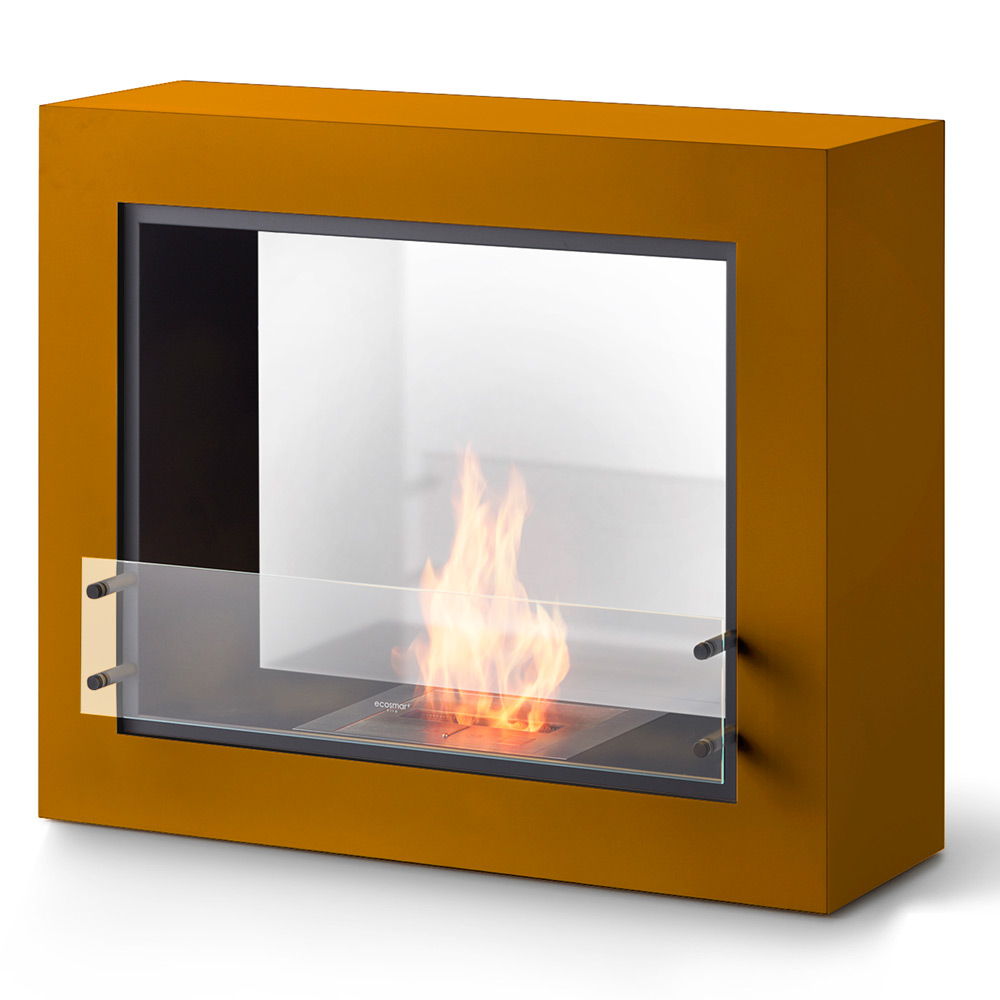 長方形の自立式二面開口型暖炉で、すっきりとしたモダンなラインが特徴です。後面には強化ガラスを使用し耐久性を高めています。