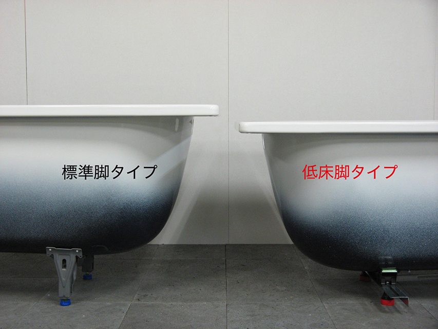 こちらの低床脚を使えば、標準脚の設置高さよりも低く設置することが可能です。少しでも跨ぎ寸法を低くしたい場合におすすめです。