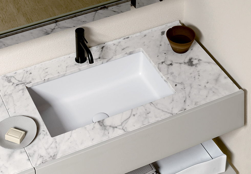 フィロは、スタイリッシュな洗面スペースを演出するワイドなアンダーカウンター型洗面ボウル。