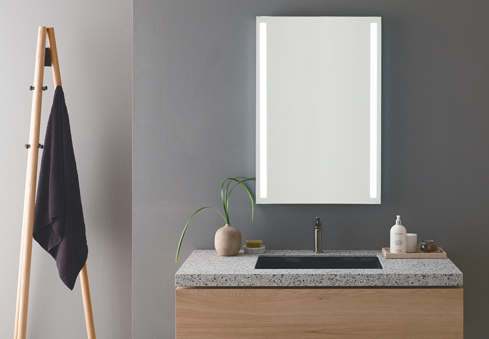 オーバーフロー穴が前面にセットされ、見た目もスッキリ。美しく個性的な水まわりを実現できます。