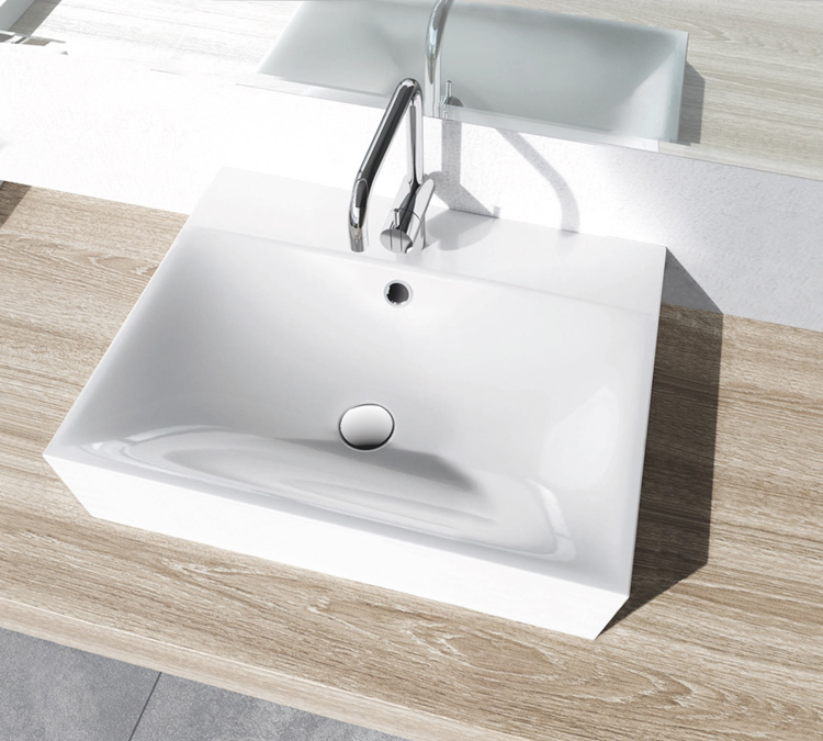 美しいデザインに加え、ホーロー特有の艶やかさと汚れのつきにくさを併せ持っています。幅約60センチのボウルは、洗顔時などに、多少、水跳ねが気になるサイズですので、住宅のファミリーユースよりもホテルなどにおすすめです。こちらのモデルは背面まで仕上げられているため、壁から離して設置することが可能となっており、鏡を背負うプランなどデザインで見せる洗面スペースに向いていますので、ホテルやゲストルームなどにおすすめです。