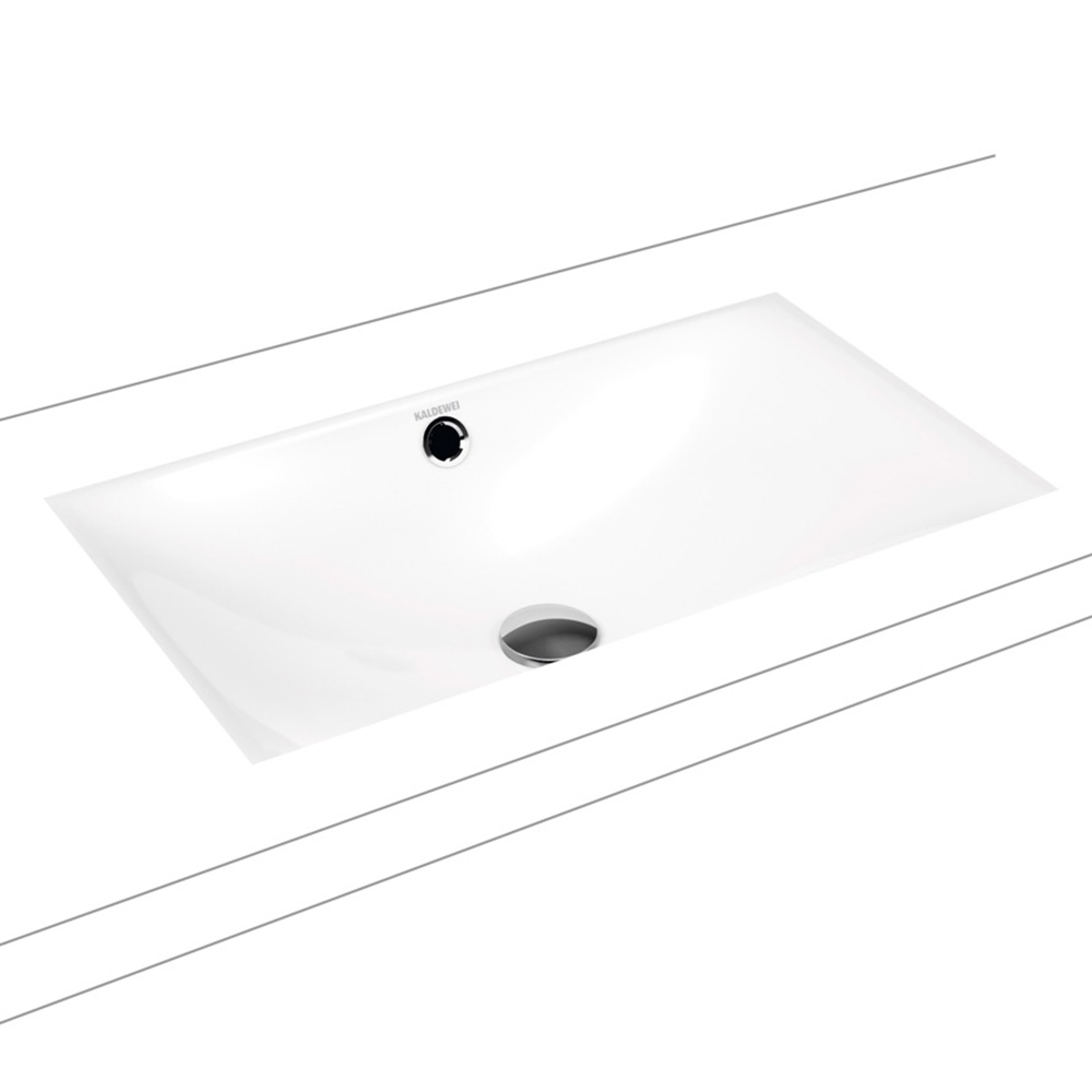 開口寸法が幅60センチ、奥行き35センチとアンダーカウンター洗面器としてはかなりゆったりとしたボウルサイズ。ご家族で使う住宅のメイン洗面器としてお使いいただいた場合、多少、周囲への水跳ねが気になりますが、アンダーカウンタータイプのためカウンターがフラットになり、お掃除がしやすくなっています。