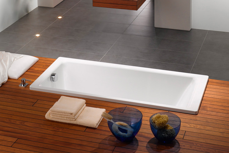 「プーロ」は、現代的なバスルームにマッチするように、直線を基調としたスクエアなフォルムのバスタブです。内側の絞り込みが少なく、実際のサイズ以上に余裕が感じられます。オーバーフロー金具が側面に配置されたモデルもラインナップしており、両サイドに二人それぞれもたれかかって入浴したい場合にもおすすめです。