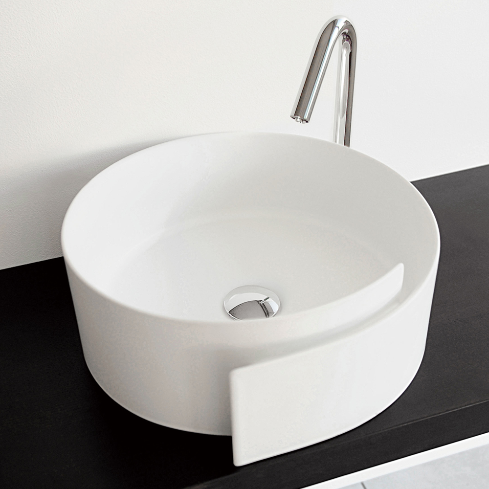 「roll」という名前の通り、1枚の紙をくるりと巻いたようにしてできた洗面器。“水を受けるための器”ではなく“洗面器=水との境界”――その巻きが作り出す境界が、水まわりに新しい意識をもたらしました。