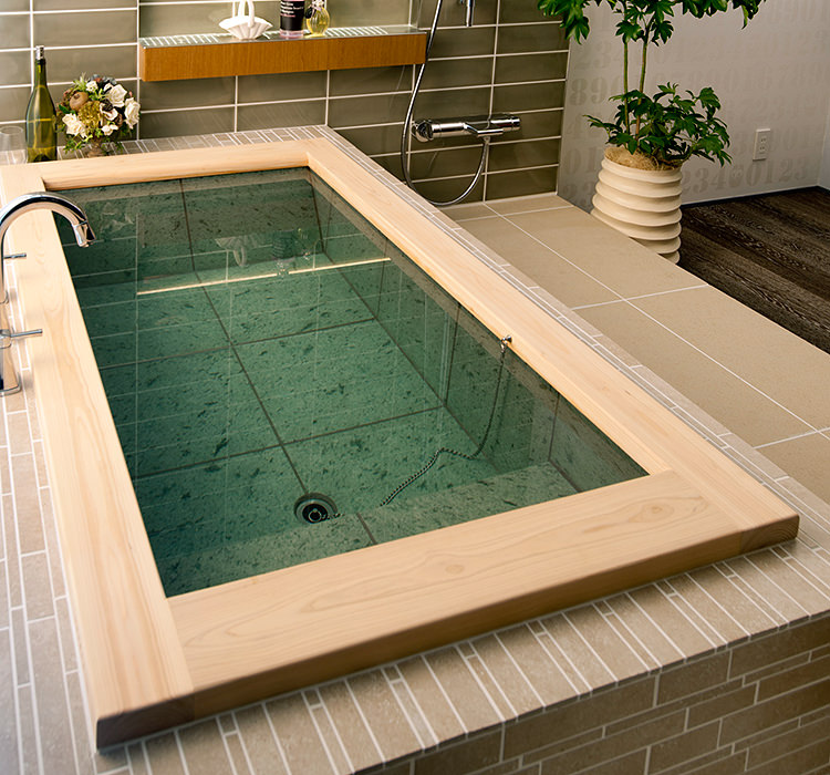 デザイン浴槽・ERNシリーズは、数多くの旅館・ホテルなどの浴場施設から高い支持を受ける、メンテナンスコストに優れたデザイン浴槽です。在来工法なみのデザインと自由度に、ユニットバスに匹敵する施工性の高さを兼ね備えております。天然石を使用した贅沢な質感とくつろぎのシルエットは、日本人の高い美意識が生み出したものです。高級旅館やスター付ホテルで採用されているこのプロダクトをHitsでは、住宅にもご提案いたします。