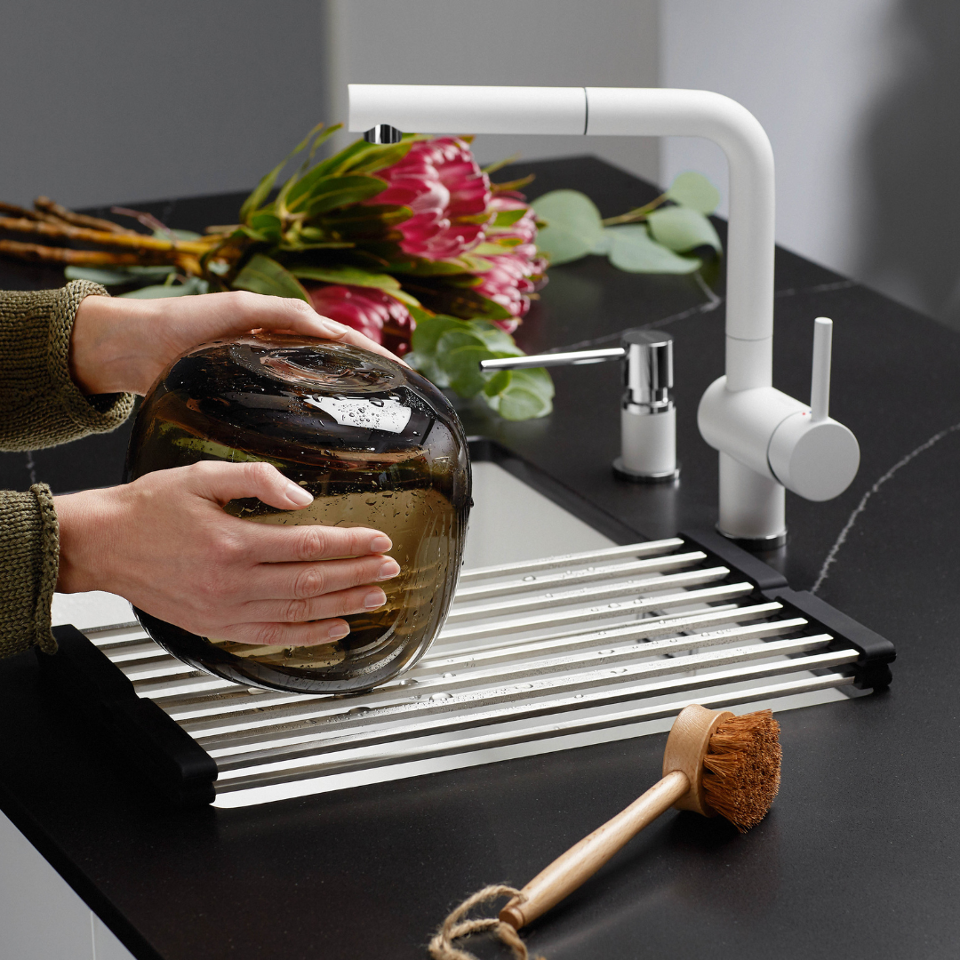 | 注意事項 | スポンジの硬い面やメラミンスポンジでのお手入れはお控えください。 雑巾やウエスでのお手入れをお願いいたします。 ※シンクと同色であっても同素材ではございません。 |