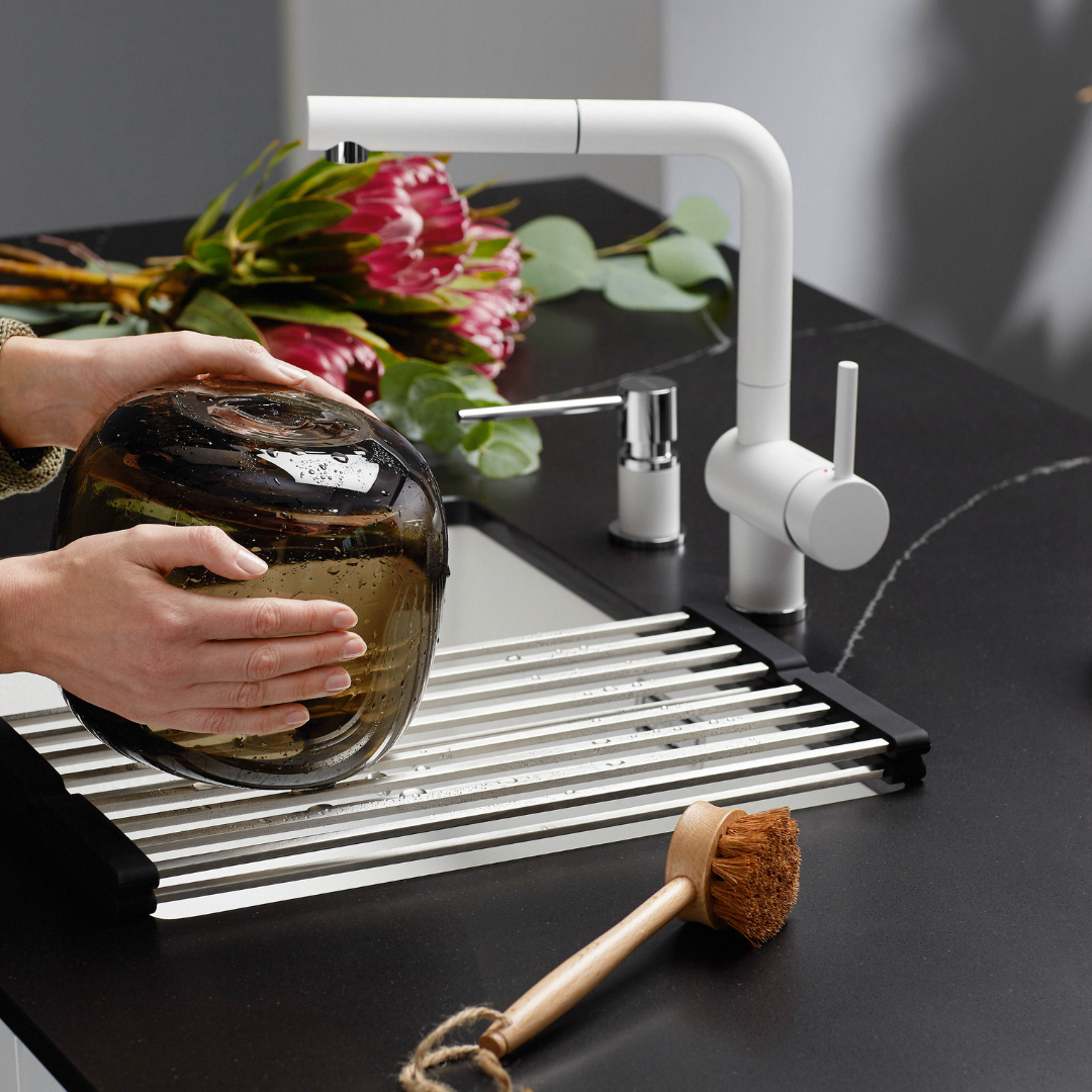 | 注意事項 | スポンジの硬い面やメラミンスポンジでのお手入れはお控えください。 雑巾やウエスでのお手入れをお願いいたします。 ※シンクと同色であっても同素材ではございません。 粘度の高い洗剤はご使用はノズルやポンプが詰まるおそれがあります。 |