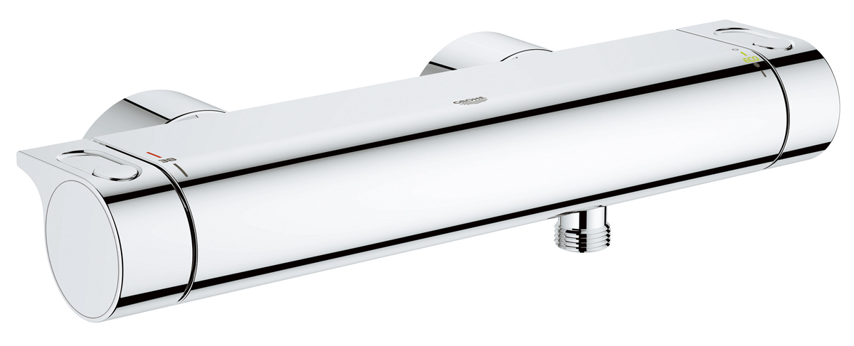 フラットに仕上げられたサーモスタット混合栓のフォルムは、バスルームをシンプルで明快なイメージにするだけでなく、ちょっとした小物を乗せておく事もできます。このグローサーモ2000のためにデザインされたPRO GRIPハンドルは、滑ることなくしっかりと握ることができ、グローエ社ならではの滑らかな操作感と相まって快適な使い心地を実現しています。