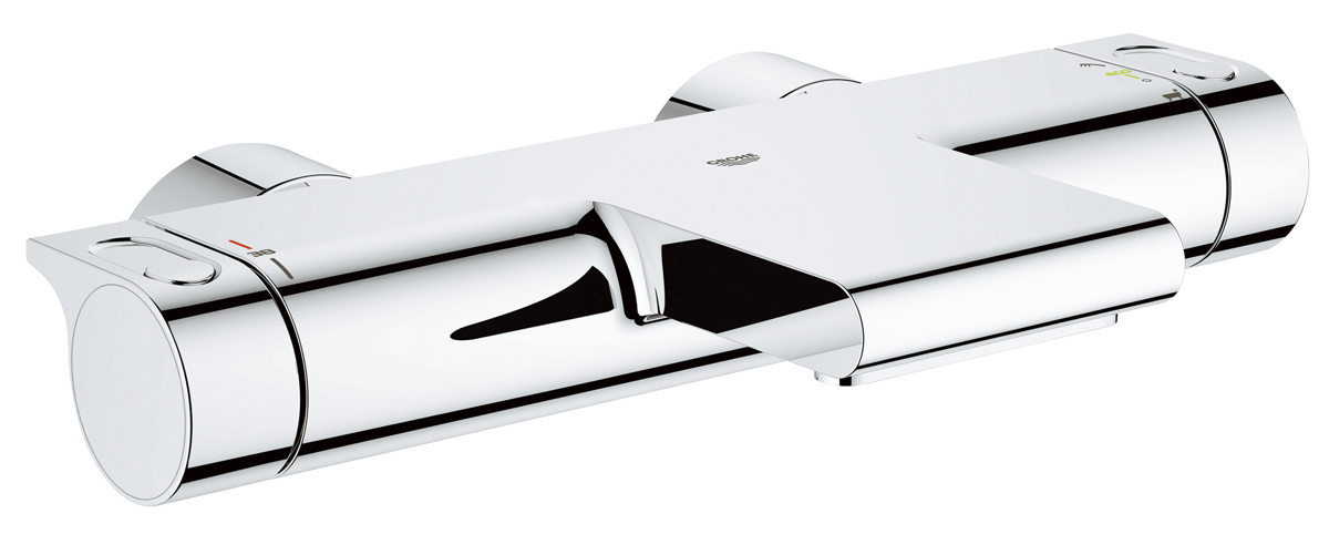 フラットに仕上げられたサーモスタット混合栓のフォルムは、バスルームをシンプルで明快なイメージにするだけでなく、ちょっとした小物を乗せておく事もできます。このグローサーモ2000のためにデザインされたPRO GRIPハンドルは、滑ることなくしっかりと握ることができ、グローエ社ならではの滑らかな操作感と相まって快適な使い心地を実現しています。