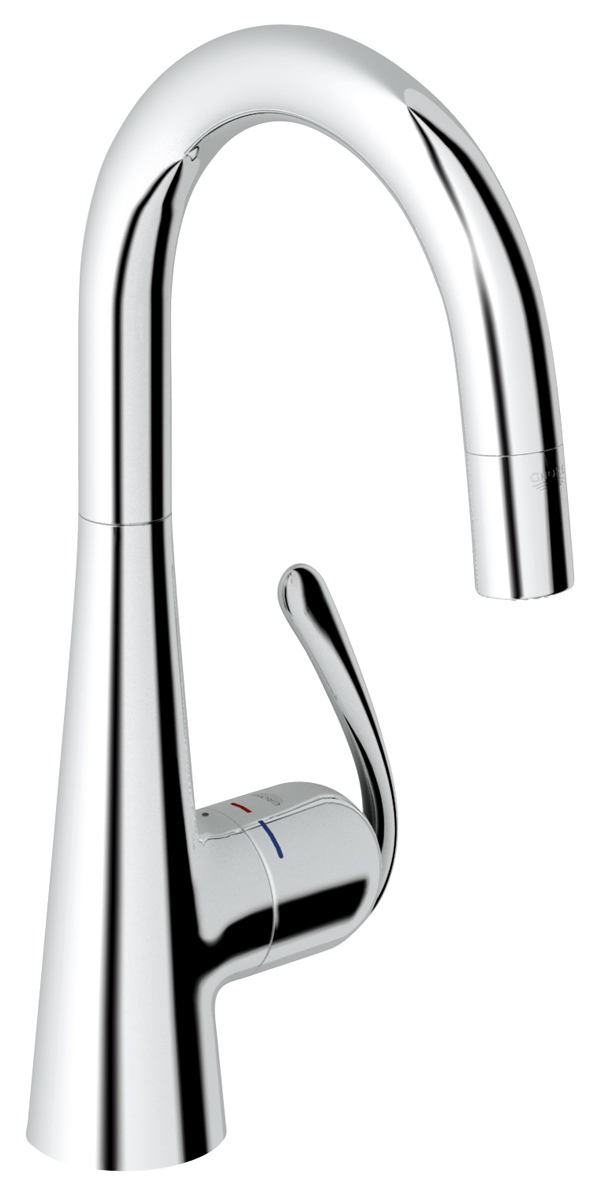 流れるようなボディデザインのゼドラは、「グローエシルクムーブ」テクノロジーにより、滑らかな操作感を実現。引出し式ヘッドは、シンクを洗浄したり、大きなお鍋に水を満たすのに最適です。通常吐水とシャワー切り替えが可能ですので、野菜やお皿についた汚れもすばやく落とすことができます。引き出し時のシリコン製シャワーノズルは、「グローエ・スピードクリーン」ノズルを採用し、水道水に含まれるミネラル分の除去が可能です。「グローエ・スターライト」と呼ばれる高級感溢れる特殊なメッキ仕上げがキッチンの主役として、華やかに彩ります。