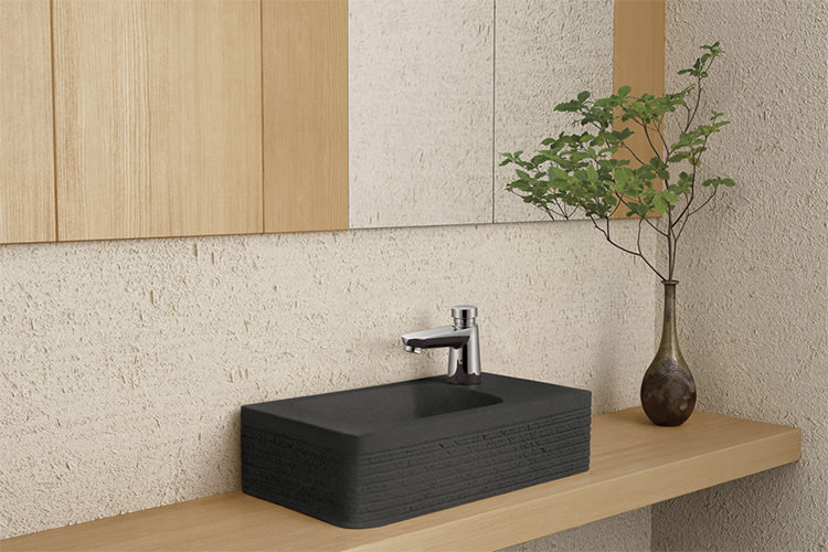 信楽焼の独特の質感が特徴の手洗器です。和テイストのインテリアにマッチします。