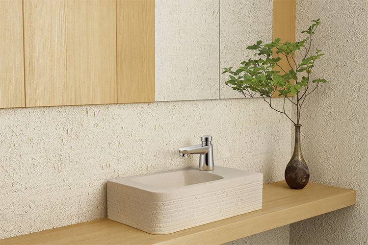 信楽焼の独特の質感が特徴の手洗器です。和テイストのインテリアにマッチします。