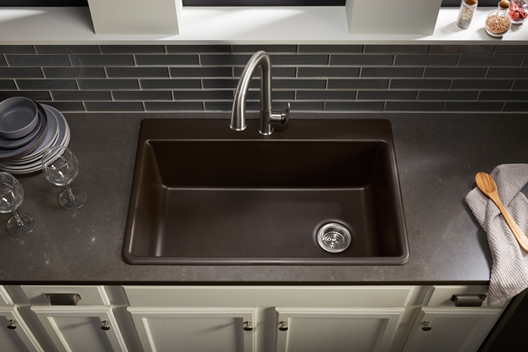 KOHLER が独自に開発した「ネオロック」は、高い耐久性を持つ全く新しい複合素材です。強力エポキシ樹脂と微細な石英(クォーツ) 粒子を配合することで、従来のアクリルレジン配合素材よりも衝撃に強く、また約 403 ℃までの耐熱性を実現。傷や色あせにも強く、まるで新品のような滑らかさがいつまでも続きます。 ホーロー素材よりも軽量で扱いやすいため、簡単に設置可能です。マットな質感とシックなカラーバリエーションで、ワンランク上のキッチンを演出します。