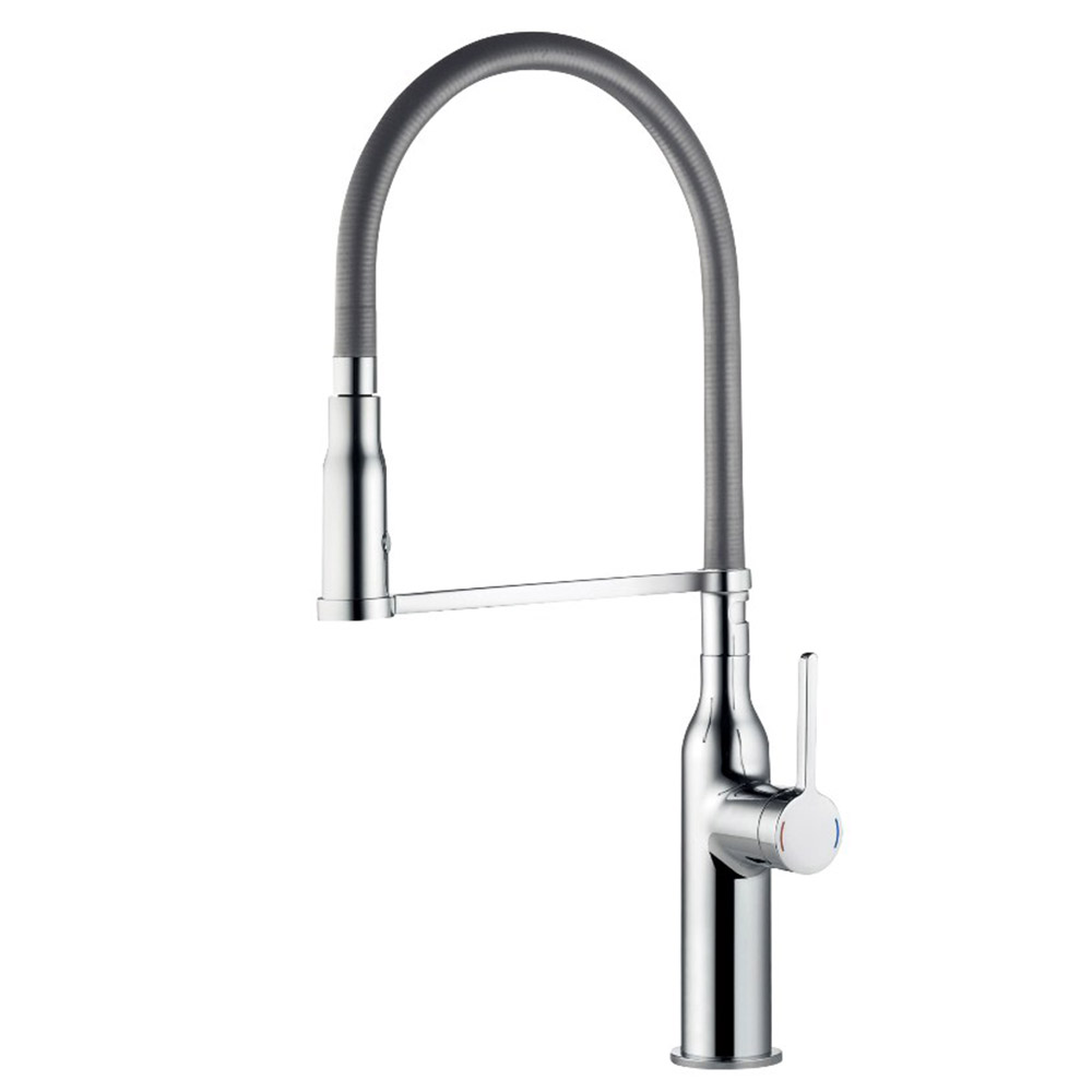 高い柔軟性と安定性を兼ね備えた、従来にはないスマートなフレキシブルスパウトは、ブラケットに吐水部を収めることができるので、両手での作業にも支障がありません。
