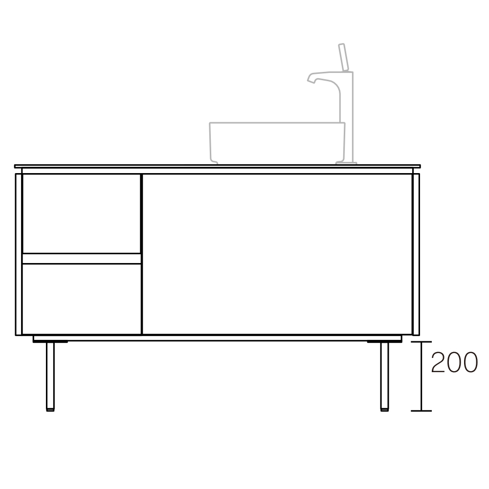 | 材質 | 天板:ウルトラセラミック(DEKTON) 扉:木材(マットペイント仕上) 脚:スチール |