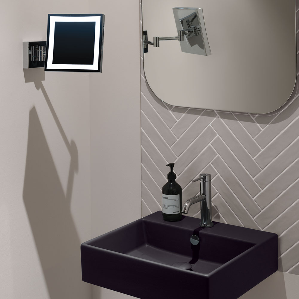 角型のLEDライト付き拡大鏡。伸縮アームで、見やすく使いやすい設計です。