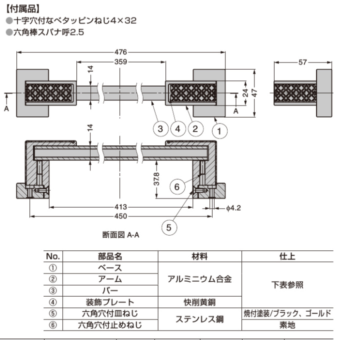 | カラー・仕上げ | アルマイト処理/マットゴールド |