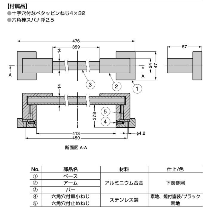 | カラー・仕上げ | アルマイト処理/ステンレス調 |