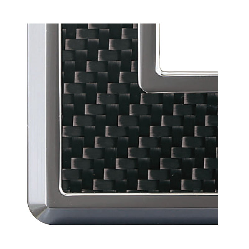 レーシングカーにも使われる、軽くて強いカーボンファイバーのメッシュの美しさをアピール。独特な織り模様の立体感をお楽しみいただけます。