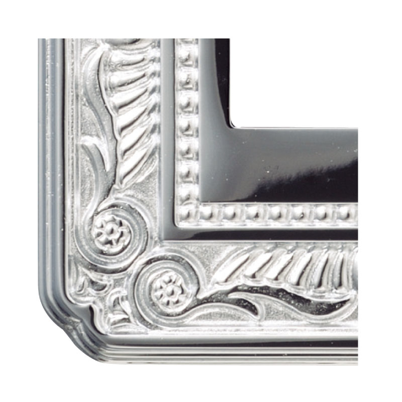 縁にもレリーフを施した、重厚で格調高いデザイン。ゴールドやクロームの輝きに加え、エナメルによる鮮やかな色彩も楽しめます。
