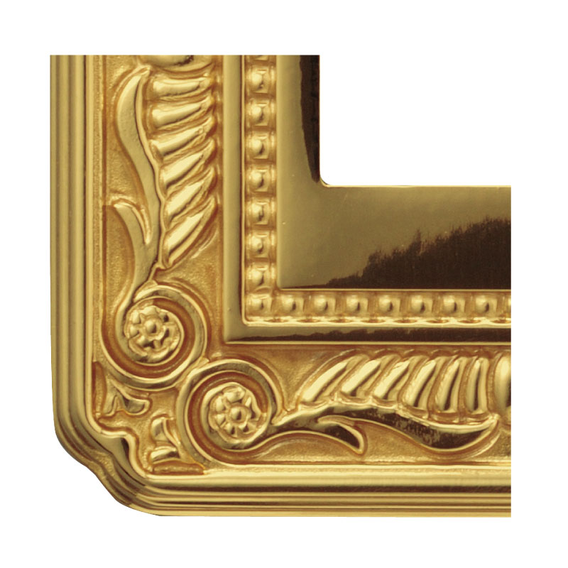 縁にもレリーフを施した、重厚で格調高いデザイン。ゴールドやクロームの輝きに加え、エナメルによる鮮やかな色彩も楽しめます。