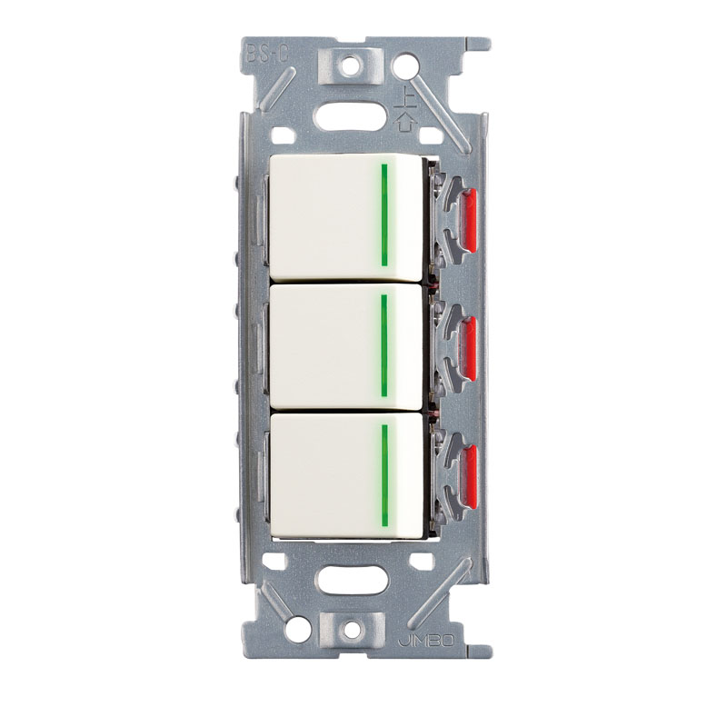 シンプルな形状とベーシックカラーでどのプレートにもマッチする、スイッチ・コンセントです。消灯時にライン状のガイドランプが点灯する3路スイッチです。片切用として使用する場合は、0-1端子に接続してください。取り付けには電気工事士の資格が必要です。ガイドランプの輝度は、接続する器具の種類、点灯方式により多少異なりますが、スイッチの異常ではありません。