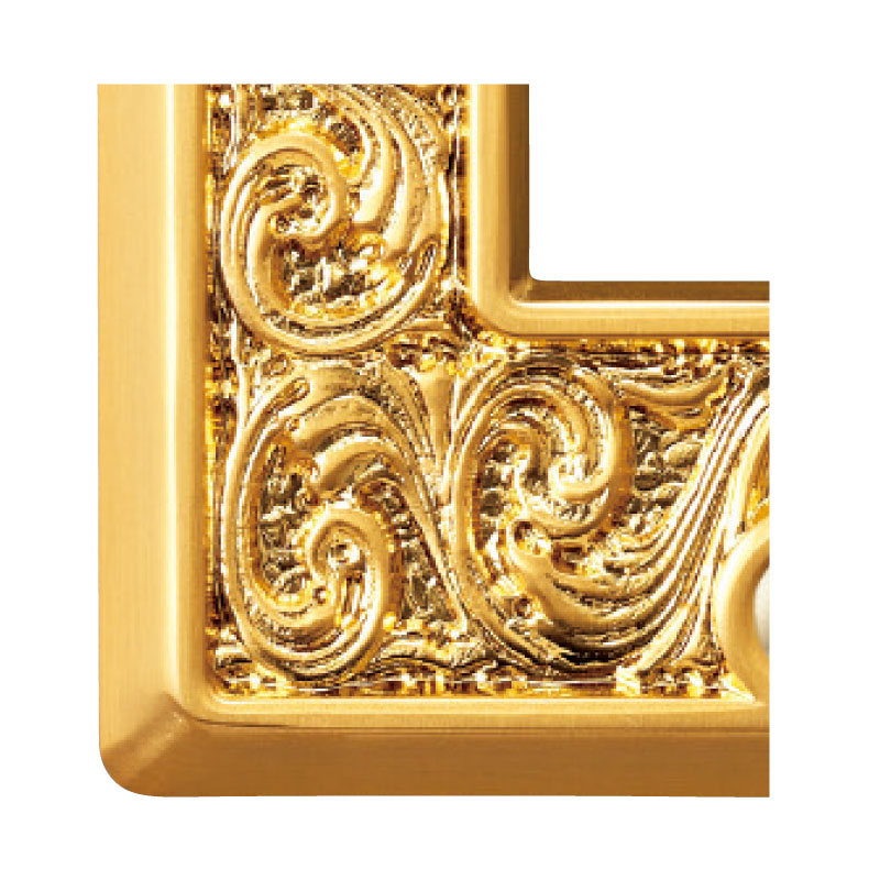 中世ヨーロッパ調の優美な唐草模様を彫り込みました。繊細なレリーフはまるで絵画の額縁のよう。4つのカラーでさまざまなシーンに対応。
