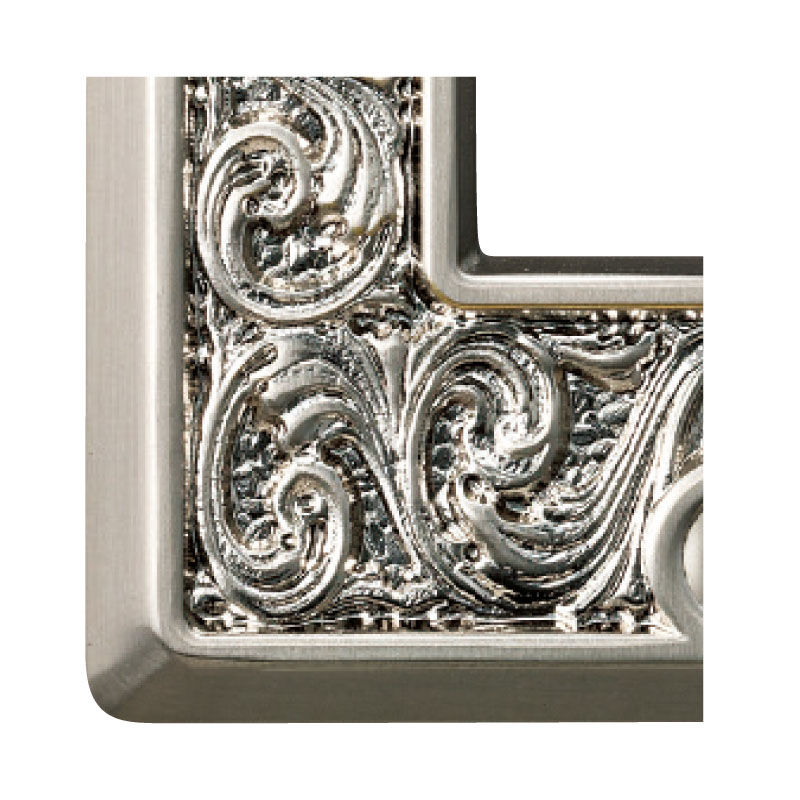 中世ヨーロッパ調の優美な唐草模様を彫り込みました。繊細なレリーフはまるで絵画の額縁のよう。4つのカラーでさまざまなシーンに対応。