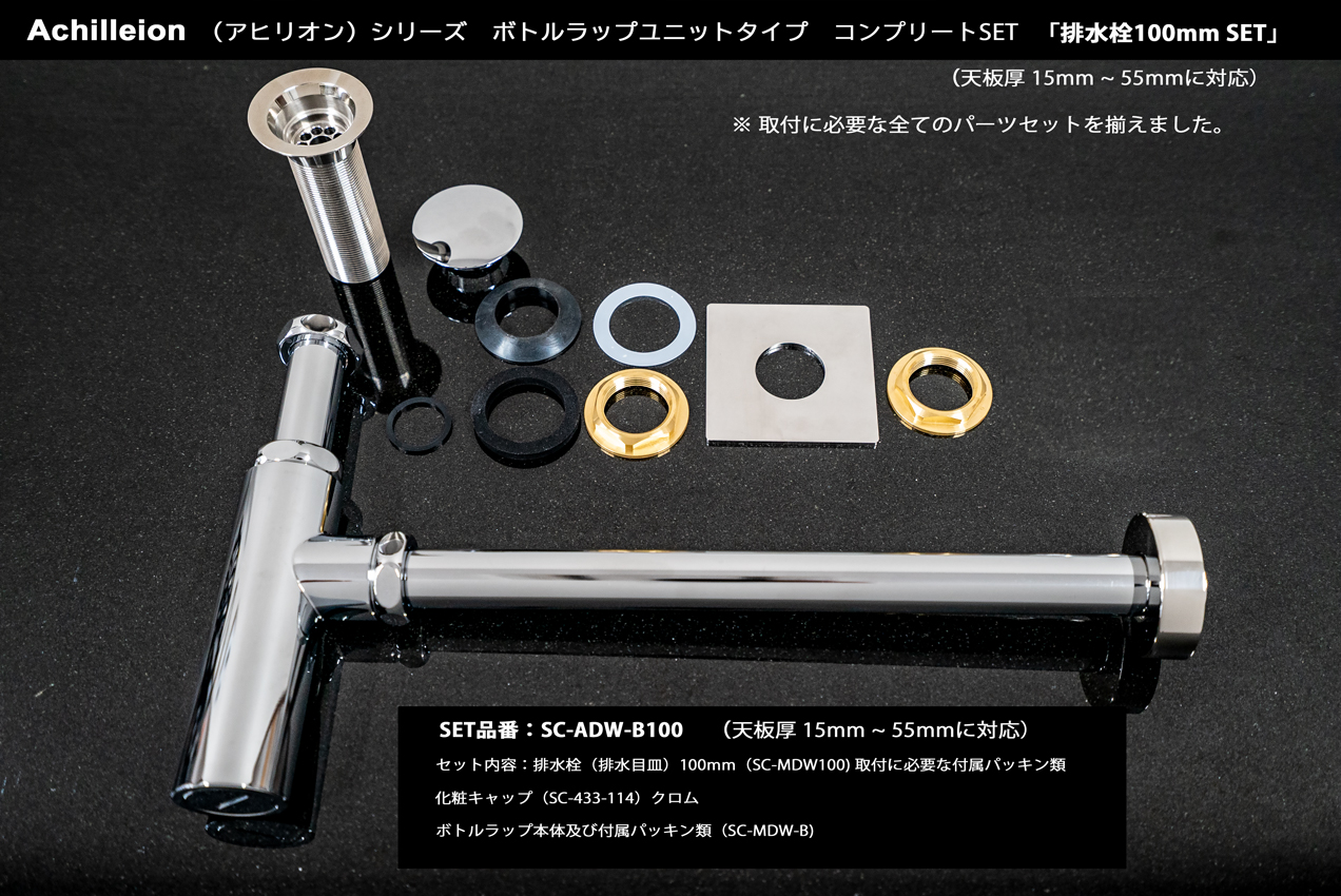 | 商品仕様 | 【セット内容】 排水目皿:SC-MDW100 化粧キャップ:SC-433-114 ボトルトラップ:SC-MDW-B 取付に必要なパッキン類 |