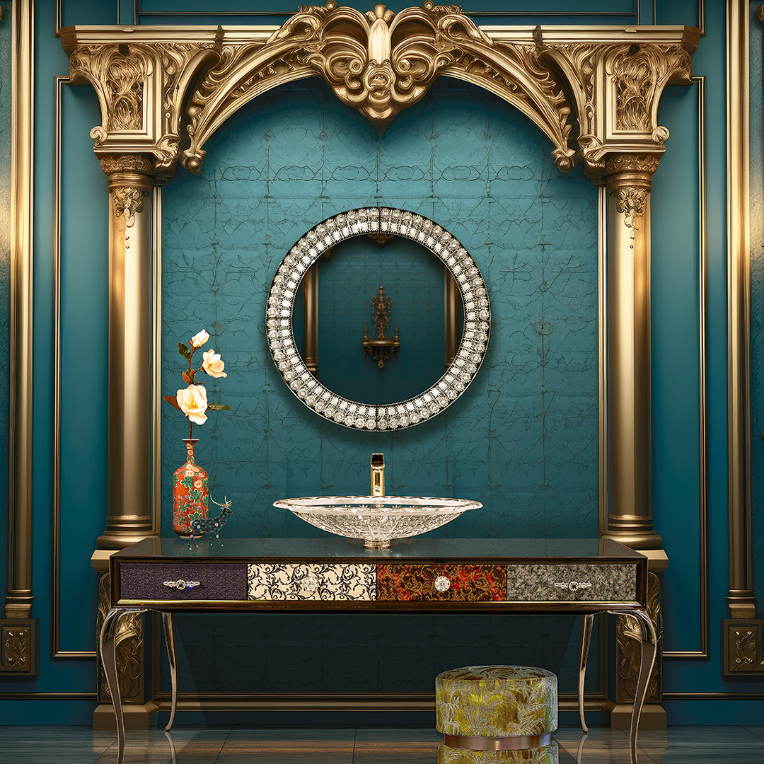 先祖代々受け継がれて来た伝統のボヘミアンクリスタルのカッティング技術による、繊細で美しい輝きは洗面スペースをゴージャスに演出します。