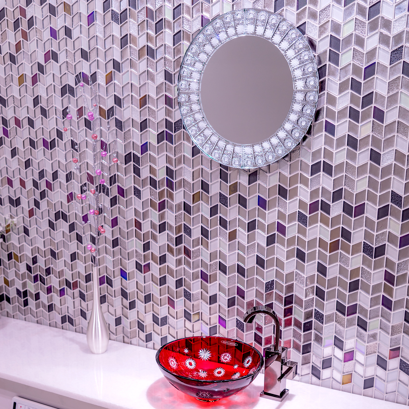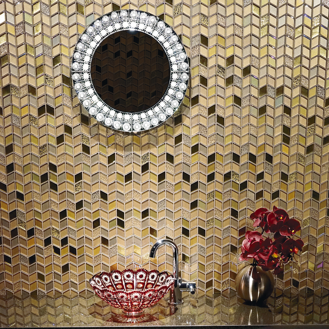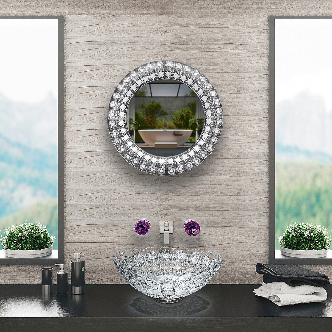 先祖代々受け継がれて来た伝統のボヘミアンクリスタルのカッティング技術による、繊細で美しい輝きは洗面スペースをゴージャスに演出します。
