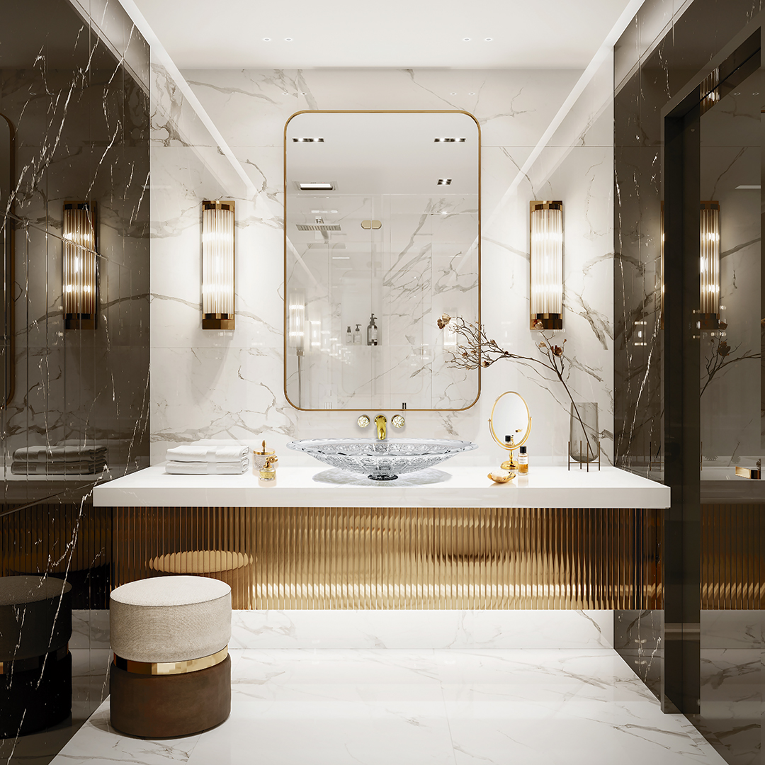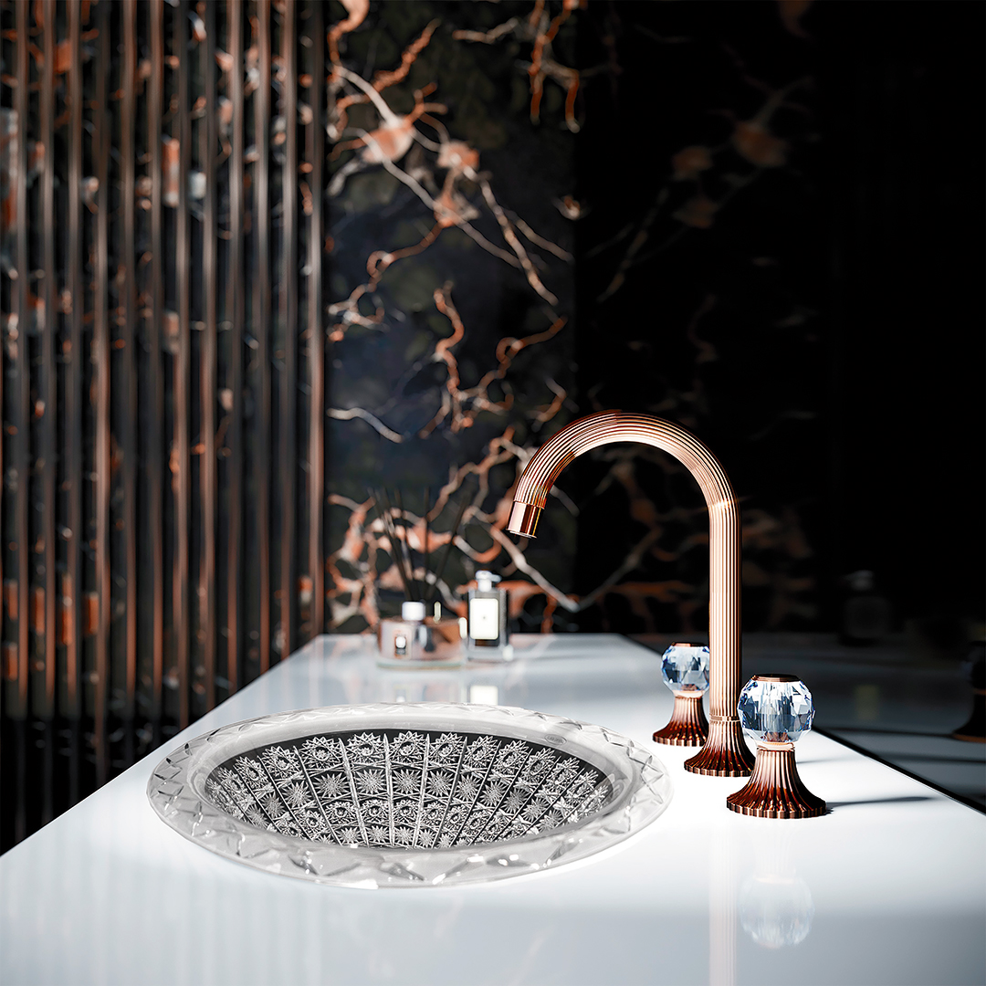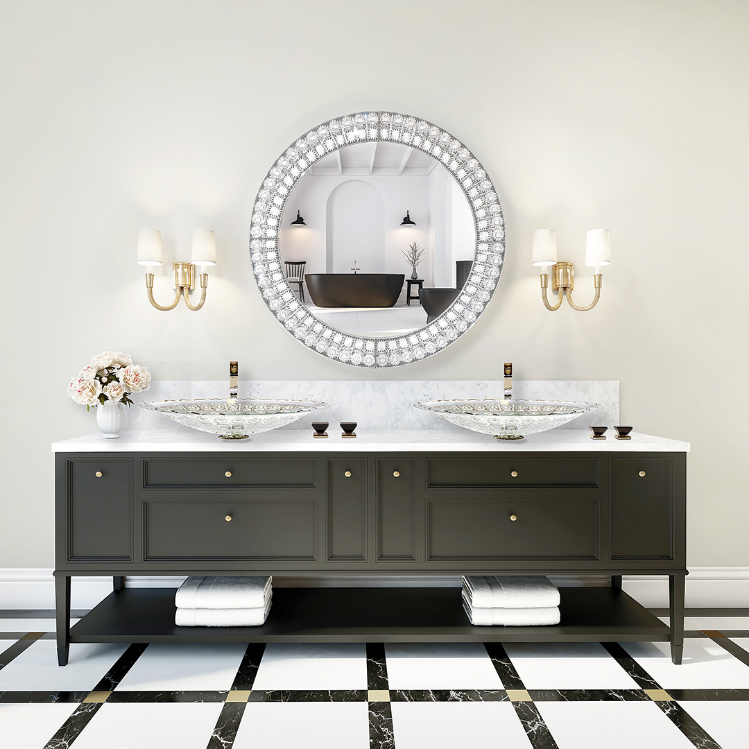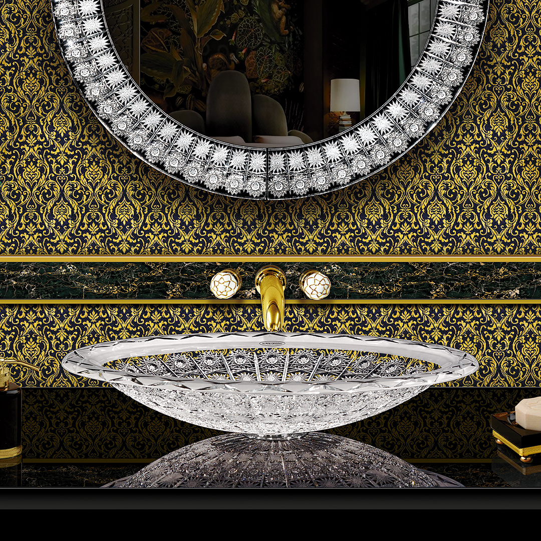 先祖代々受け継がれて来た伝統のボヘミアンクリスタルのカッティング技術による、繊細で美しい輝きは洗面スペースをゴージャスに演出します。