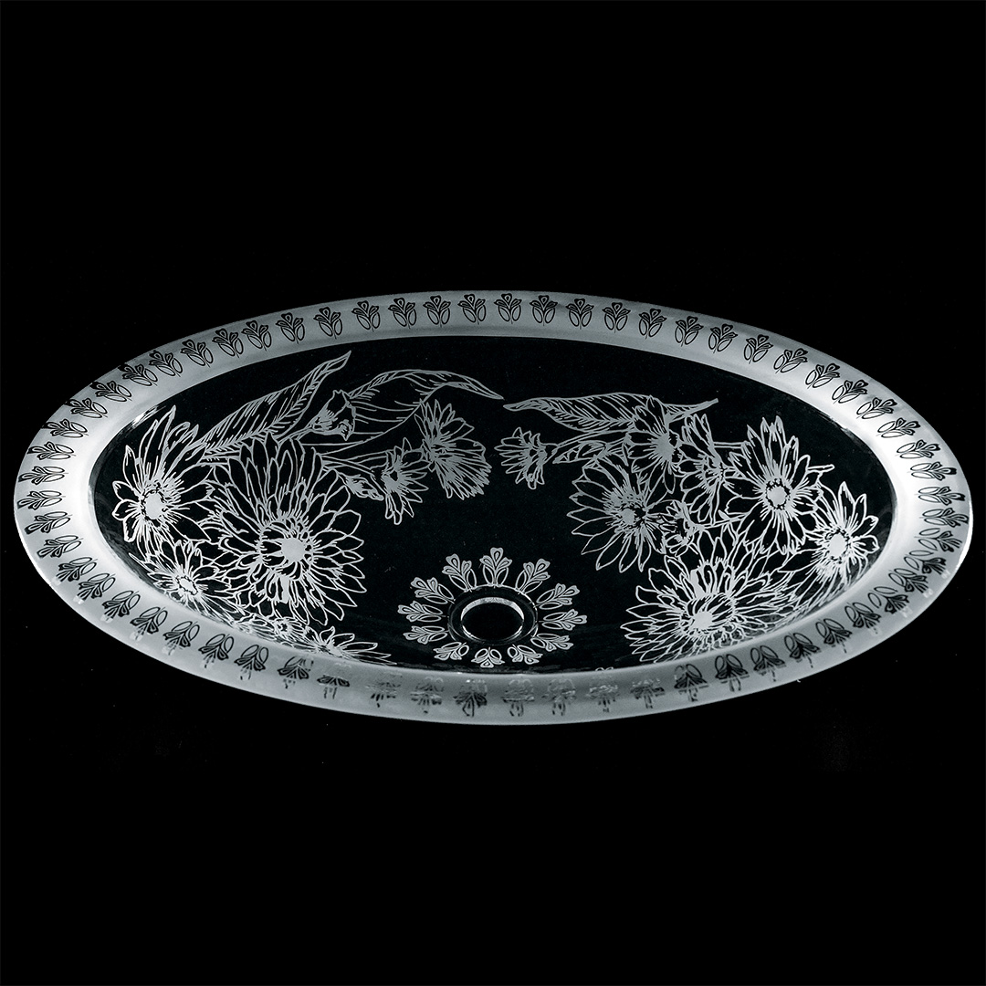 | 注意事項 | ※本製品は吹きガラスによる一品生産品ですので、サイズ、彫刻(エングレビング)は同じ品番であっても多少の違いが生じます。 また、製品の特性上、小さな気泡が入る場合もございます。予めご了承ください。 ※混合栓のご使用は可能ですが、45℃までの温度設定でご使用ください。熱湯の吐水はしないでください。 表示価格は、洗面ボウル(洗面器)のみの価格です。 ※別途、排水金具を関連商品からご選定ください。 |