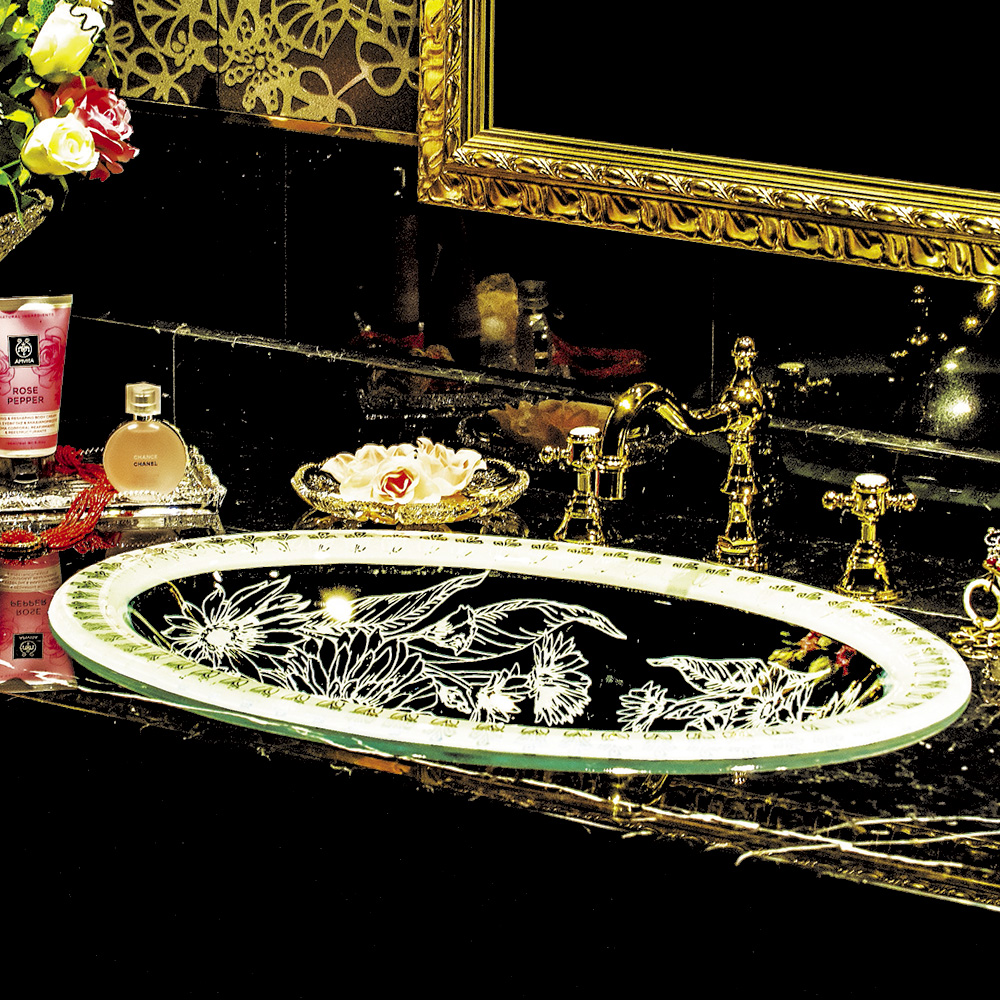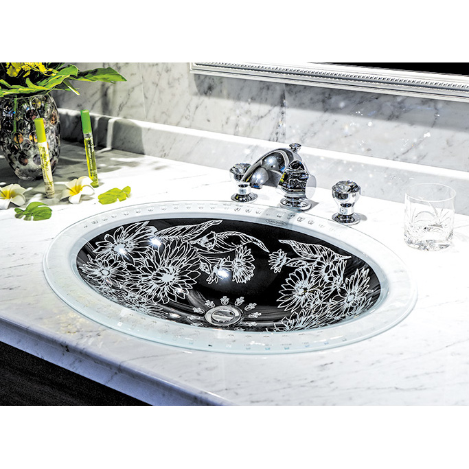 先祖代々受け継がれて来た伝統のボヘミアンクリスタルのカッティング技術による、繊細で美しい輝きは洗面スペースをゴージャスに演出します。