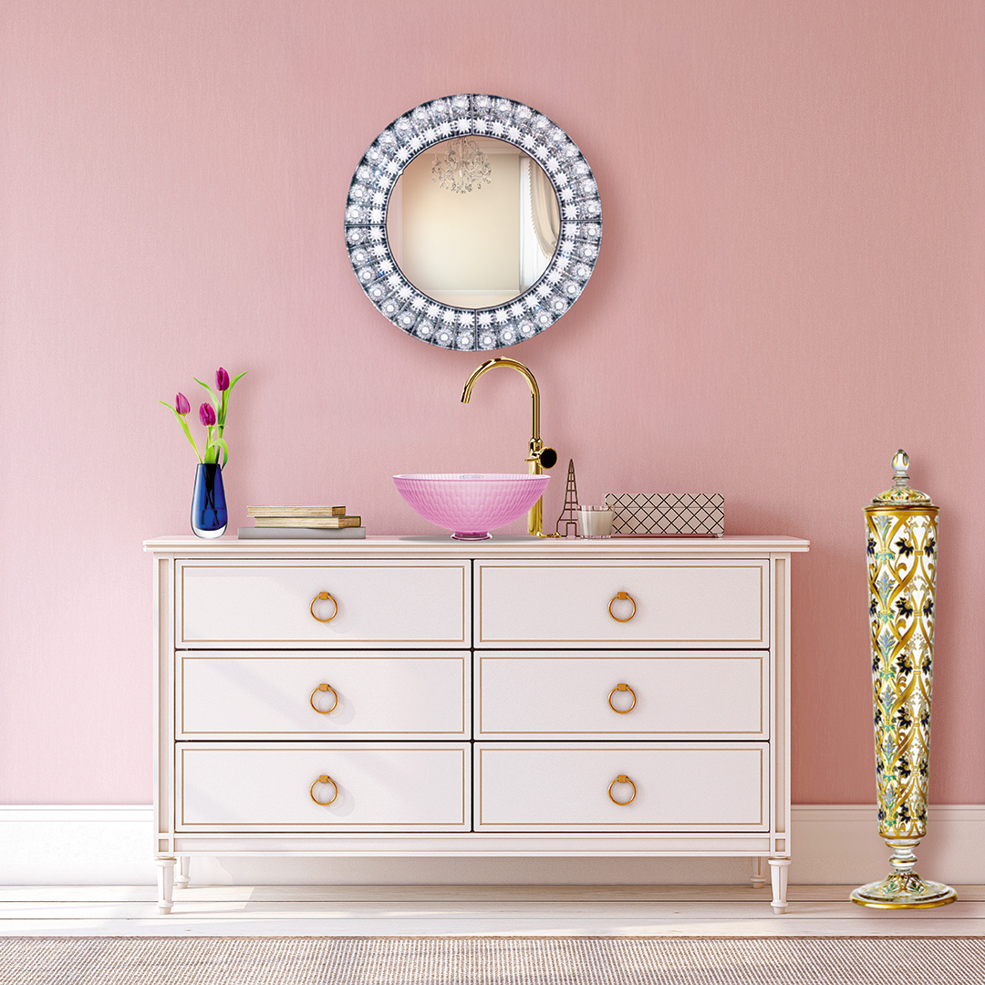 先祖代々受け継がれて来た伝統のボヘミアンクリスタルのカッティング技術による、繊細で美しい輝きは洗面スペースをゴージャスに演出します。