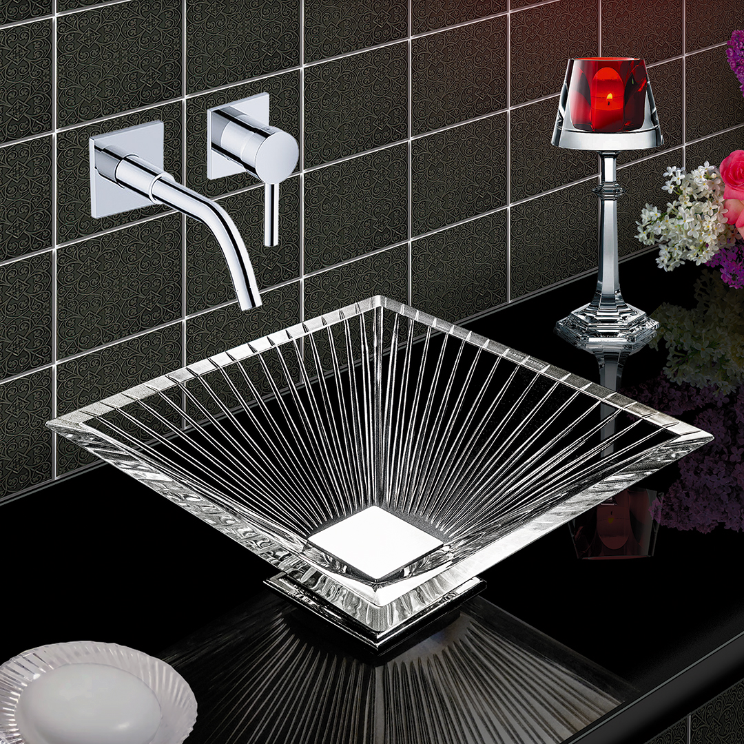 非常に高度なカッティング技術から生まれる洗面ボウルは、どの角度から見ても美しい輝きを放ちます。