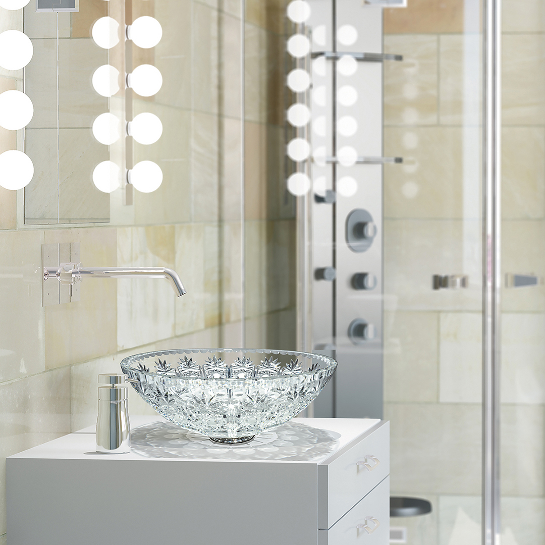 先祖代々受け継がれて来た伝統のボヘミアンクリスタルのカッティング技術による、繊細で美しい輝きは洗面スペースをゴージャスに演出します。