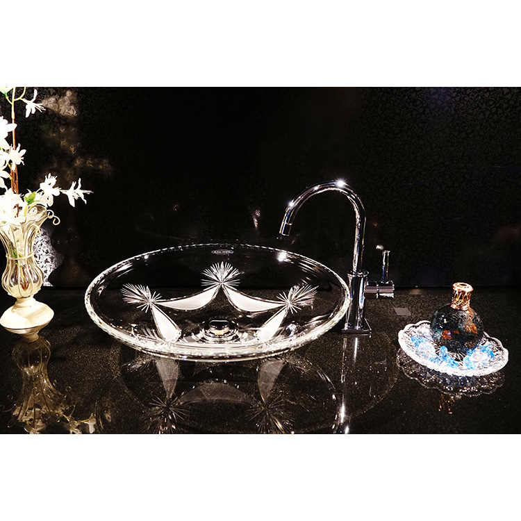 非常に高度なカッティング技術から生まれる洗面ボウルは、どの角度から見ても美しい輝きを放ちます。